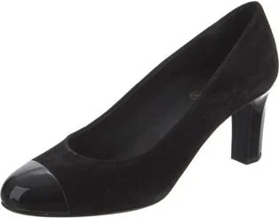 Chanel Suede Pumps From the 2018 Collection by Karl Lagerfeld Black Interlocking CC Logo Patent Leather Trim Round-Toes Designer Fit: This style typically runs narrow and a half size small. Read more