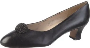 Salvatore Ferragamo Leather Pumps Black Round-Toes Fit: This style typically runs a half size small. Unfortunately, due to restrictions, this item may not be eligible for shipping in all areas.