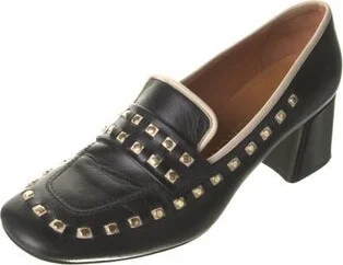 Tory Burch Leather Pumps Black Square-Toes with Studded Accents Designer Fit: This designer typically runs true to size. Unfortunately, due to restrictions, this item may not be eligible for shipping in all areas.