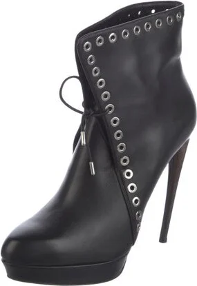 Alexander McQueen Leather Ankle Lace-Up Boots Black Semi-Pointed Toes Platform Lace-Up Closure at Uppers Unfortunately, due to restrictions, this item may not be eligible for shipping in all areas.