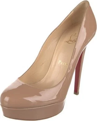 Christian Louboutin Patent Leather Pumps Brown Round-Toes Platform Designer Fit: This style typically runs a half size to a full size small.