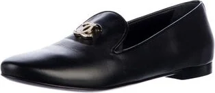 Chanel Leather Loafers From the 2018 Collection by Karl Lagerfeld Black Interlocking CC Logo & Faux Pearl Accents Round-Toes with Crystal Embellishments Includes Dust Bag Designer Fit: This style typi Read more