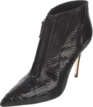 Manolo Blahnik Snakeskin Ankle Lace-Up Boots Black Animal Print Pointed-Toes Concealed Zip Closure at Uppers Designer Fit: This style typically runs a full size small. Unfortunately, due to restrictio Read more