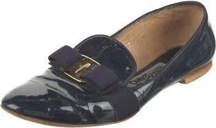 Ferragamo Patent Leather Loafers Blue Round-Toes with Bow Accents Includes Dust Bag Read more