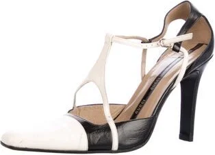 Gucci Leather T-Strap Pumps Black Square-Toes Wrap-Around Straps & Buckle Closure at Ankles Unfortunately, due to restrictions, this item may not be eligible for shipping in all areas. Read more
