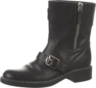 Gucci Leather Mid-Calf Moto Boots Black Round-Toes Exposed Zip Closure at Sides Fit: This style typically runs a half size small. Unfortunately, due to restrictions, this item may not be eligible for shipping in all areas.