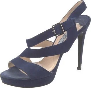 Prada Suede Slingback Sandals Blue Platform Straps & Buckle Closure at Sides Includes Dust Bag Designer Fit: Sandals by Prada typically run a half size small. Read more