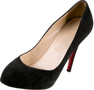 Christian Louboutin Suede Pumps Black Round-Toes Platform Designer Fit: This style typically runs a half size to a full size small.