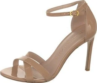 Stuart Weitzman Patent Leather Sandals Neutrals Wrap-Around Straps & Buckle Closure at Ankles Designer Fit: This designer typically runs true to size. Read more
