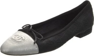 Chanel Ballet Flats By Karl Lagerfeld Black Interlocking CC Logo Leather Trim Grosgrain & Bow Accents Round-Toes Includes Dust Bag Designer Fit: This style typically runs narrow and a half size to a f Read more