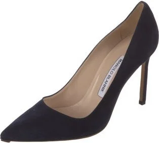 Manolo Blahnik Suede Pumps Blue Pointed-Toes Fit: This style typically runs narrow and a half size small. Read more