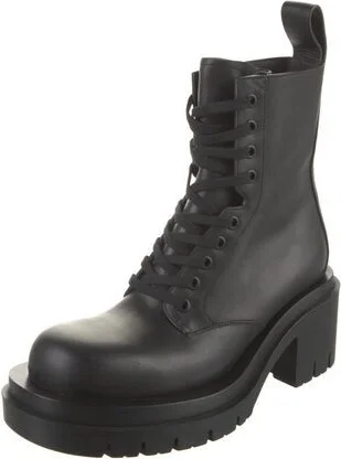 Bottega Veneta Leather Mid-Calf Combat Boots Black Rubber Trim Square-Toes Platform Lace-Up Closure at Uppers Includes Box & Dust Bag Unfortunately, due to restrictions, this item may not be eligible Read more