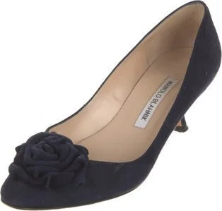 Manolo Blahnik Suede Pumps Blue Semi-Pointed Toes Fit: This style typically runs narrow and a half size small. Read more