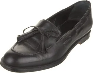 Manolo Blahnik Leather Loafers Black Braided, Tassel & Bow Accents Round-Toes Designer Fit: This style typically runs narrow and a half size small. Unfortunately, due to restrictions, this item may no Read more