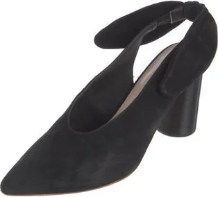 Loeffler Randall Suede Slingback Pumps Black Semi-Pointed Toes with Bow Accents Wrap-Around Straps