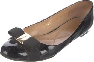 Salvatore Ferragamo Patent Leather Ballet Flats Black Semi-Pointed Toes with Bow Accents Fit: This style typically runs a half size small. Read more