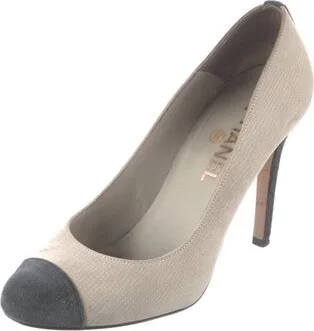Chanel Suede Pumps From the 2011 Collection by Karl Lagerfeld Neutrals Interlocking CC Logo Round-Toes Includes Dust Bag Designer Fit: This style typically runs narrow and a half size small. Read more