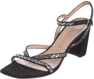 Stuart Weitzman Suede Slingback Sandals Black Crystal Embellishments Multistrap & Buckle Closure at Ankles Designer Fit: This designer typically runs true to size.