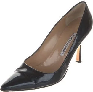 Manolo Blahnik Leather Pumps Blue Semi-Pointed Toes Fit: This style typically runs narrow and a half size small. Unfortunately, due to restrictions, this item may not be eligible for shipping in all a Read more