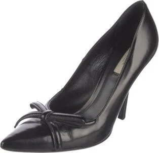 Prada Leather Pumps Black Semi-Pointed Toes with Bow Accents Platform Crossover Straps Includes Dust Bag Designer Fit: Pumps by Prada typically run a half size small. Unfortunately, due to restriction Read more