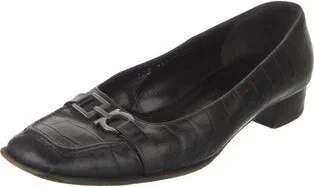 Salvatore Ferragamo Leather Flats Black Square-Toes with Bow Accents Fit: This style typically runs a half size small. Unfortunately, due to restrictions, this item may not be eligible for shipping in Read more