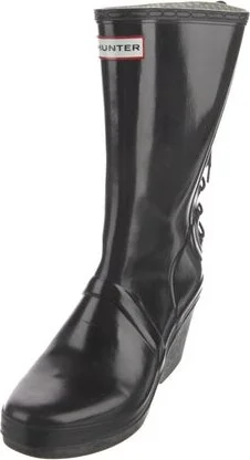 Hunter Rubber Mid-Calf Rain Boots Black Square-Toes Platform Read more