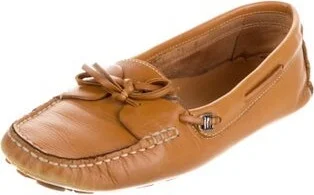 Salvatore Ferragamo Leather Loafers Brown Round-Toes Includes Box Fit: This style typically runs a half size small. Unfortunately, due to restrictions, this item may not be eligible for shipping in all areas.