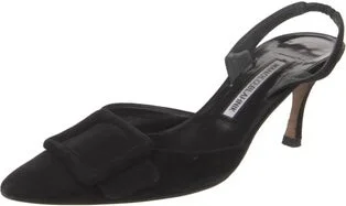 Manolo Blahnik Suede Slingback Pumps Black Semi-Pointed Toes Straps Fit: This style typically runs narrow and a half size small. Read more