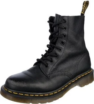 Dr. Martens Leather Ankle Combat Boots Black Round-Toes Platform Lace-Up Closure at Uppers Unfortunately, due to restrictions, this item may not be eligible for shipping in all areas.