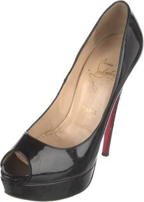 Christian Louboutin Patent Leather Pumps Black Peep-Toes Platform Designer Fit: This style typically runs a half size to a full size small.