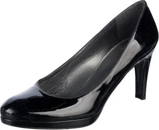 Stuart Weitzman Patent Leather Pumps Black Round-Toes Platform Designer Fit: This designer typically runs true to size. Read more