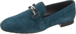 Tod's Suede Loafers Blue Round-Toes Includes Box & Dust Bag Read more