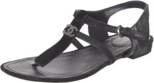 Chanel Ponyhair T-Strap Sandals From the 2015 Collection by Karl Lagerfeld Black Interlocking CC Logo & Quilted Pattern Buckle Closure at Ankles Designer Fit: This style typically runs narrow and a ha Read more