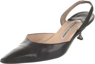 Manolo Blahnik Leather Slingback Pumps Black Semi-Pointed Toes Includes Box Fit: This style typically runs narrow and a half size small. Unfortunately, due to restrictions, this item may not be eligib Read more