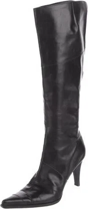Sergio Rossi Leather Knee-High Boots Black Pointed-Toes Concealed Zip Closure at Sides Unfortunately, due to restrictions, this item may not be eligible for shipping in all areas. Read more