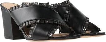 sandals, leather, solid color with appliqués, embellished, leather lining, square toe, square heel, covered heel, leather sole, contains non-textile parts of animal origin , Color: Black Read more