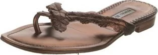 Manolo Blahnik Leather Slides Brown & Metallic Fit: This style typically runs narrow and a half size small. Unfortunately, due to restrictions, this item may not be eligible for shipping in all areas.