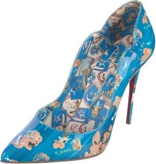 Christian Louboutin Patent Leather Pumps Blue Printed Leather Trim Semi-Pointed Toes Includes Box Designer Fit: This style typically runs a half size to a full size small.
