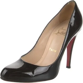 Christian Louboutin Patent Leather Pumps Black Semi-Pointed Toes Designer Fit: This style typically runs a half size to a full size small.