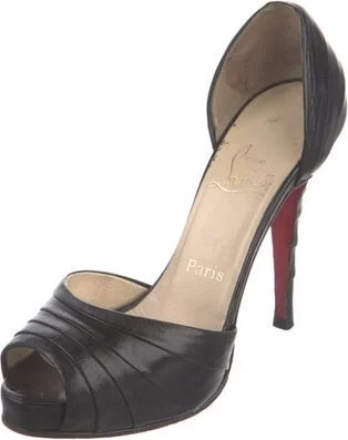 Christian Louboutin Leather D'Orsay Pumps Black Peep-Toes Platform Designer Fit: This style typically runs a half size to a full size small. Unfortunately, due to restrictions, this item may not be eligible for shipping in all areas.