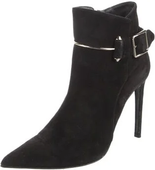 Balenciaga Suede Ankle Boots Black Leather Trim Pointed-Toes Wrap-Around Straps & Exposed Zip Closure at Sides Designer Fit: Boots by Balenciaga typically run a half size small.