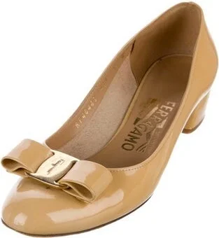 Salvatore Ferragamo Patent Leather Pumps Neutrals Vara Bow Accent Round-Toes with Bow Accents Fit: This style typically runs a half size small.