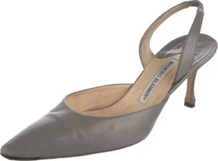 Manolo Blahnik Leather Slingback Pumps Silver Semi-Pointed Toes Straps Includes Box & Dust Bag Fit: This style typically runs narrow and a half size small. Unfortunately, due to restrictions, this item may not be eligible for shipping in all areas.