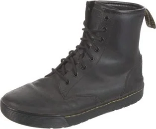 Dr. Martens Leather Ankle Combat Boots Black Rubber Trim Round-Toes Platform Lace-Up Closure at Uppers Unfortunately, due to restrictions, this item may not be eligible for shipping in all areas.
