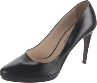 Prada Leather Pumps Black Semi-Pointed Toes Platform Designer Fit: Pumps by Prada typically run a half size small. Unfortunately, due to restrictions, this item may not be eligible for shipping in all Read more
