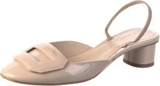 Christian Dior Patent Leather Slingback Pumps Neutrals Round-Toes Elasticized Straps Designer Fit: Pumps by Christian Dior typically run a half size small.
