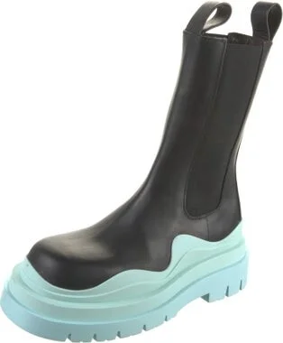 Bottega Veneta Leather Mid-Calf Chelsea Boots Black Rubber Trim Square-Toes Includes Box & Dust Bag Unfortunately, due to restrictions, this item may not be eligible for shipping in all areas. Read more