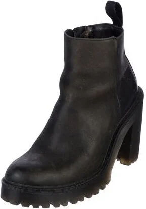 Dr. Martens Leather Ankle Boots Black Round-Toes Platform Exposed Zip Closure at Sides Unfortunately, due to restrictions, this item may not be eligible for shipping in all areas. Read more