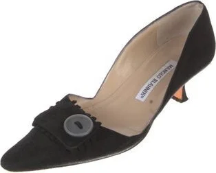 Manolo Blahnik Suede D'Orsay Pumps Black Semi-Pointed Toes with Bow Accents Fit: This style typically runs narrow and a half size small. Read more