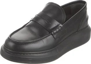 Alexander McQueen Leather Loafers Black Round-Toes Platform Includes Box & Dust Bag Unfortunately, due to restrictions, this item may not be eligible for shipping in all areas. Read more